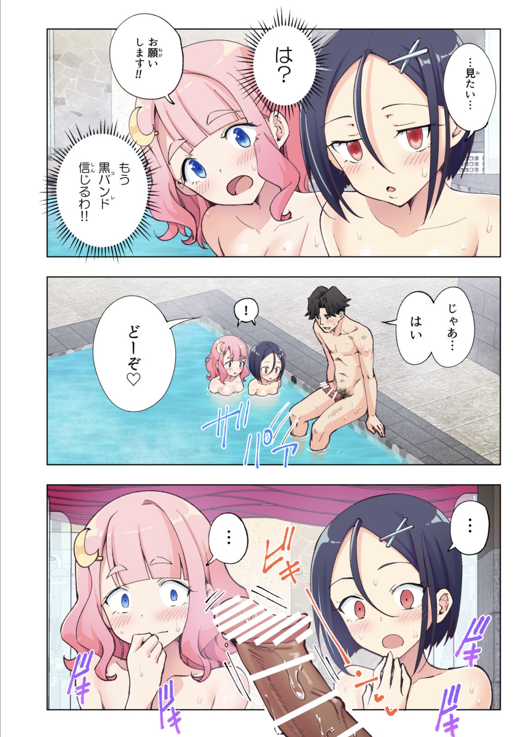 母親同士が友達で2家族で遊びに来ていたアズサ(黒髪)とモモカ(ピンク髪)は、ユキちゃんとのSEX現場を目撃してしまう。