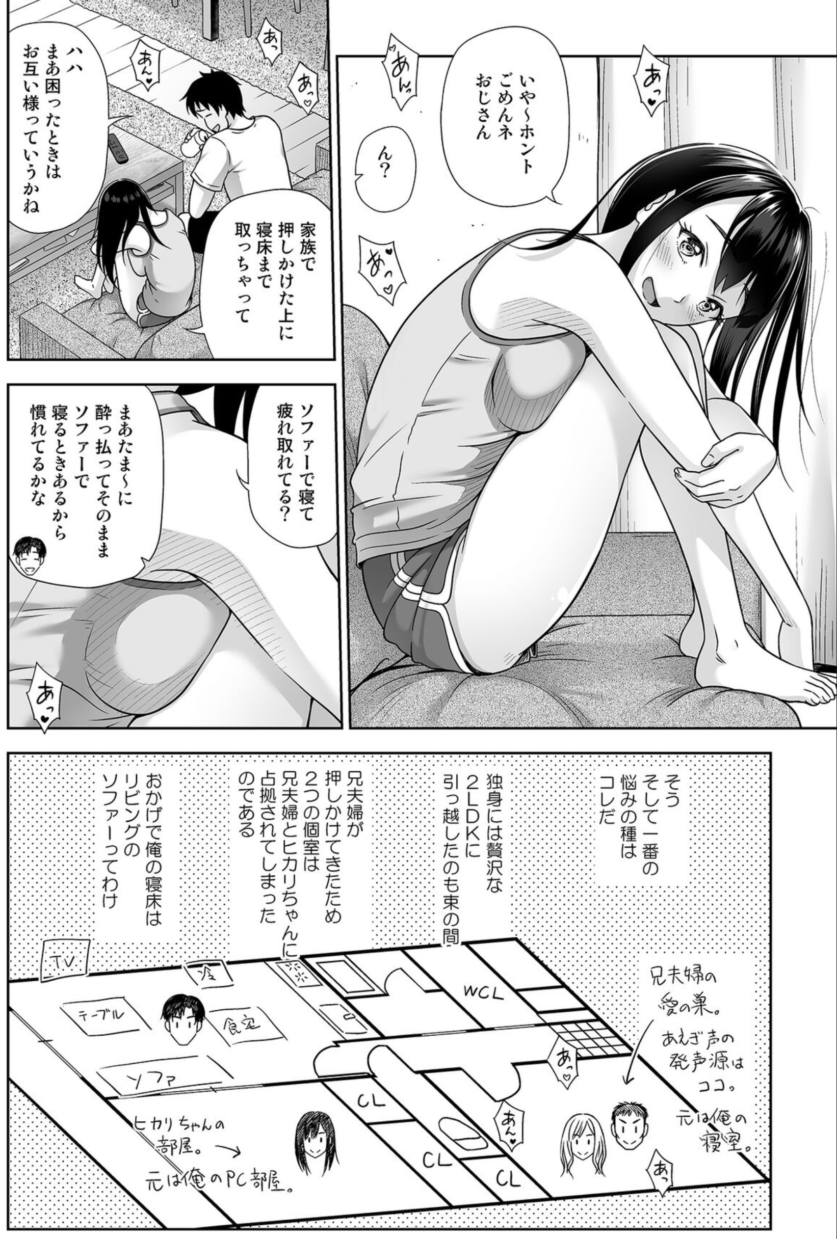 同居する兄夫婦の情事の際の喘ぎ声と、ラフな格好で健康的な身体を見せつける姪のヒカリに悶々とするタケル。